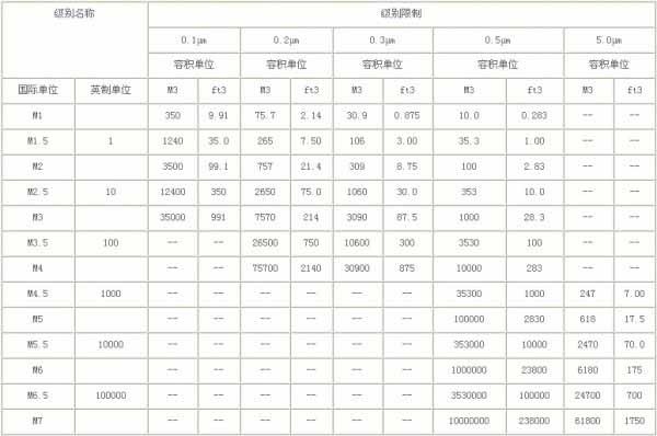 美國(guó)聯(lián)邦標(biāo)準(zhǔn)FS209E的空氣潔凈度級(jí)別